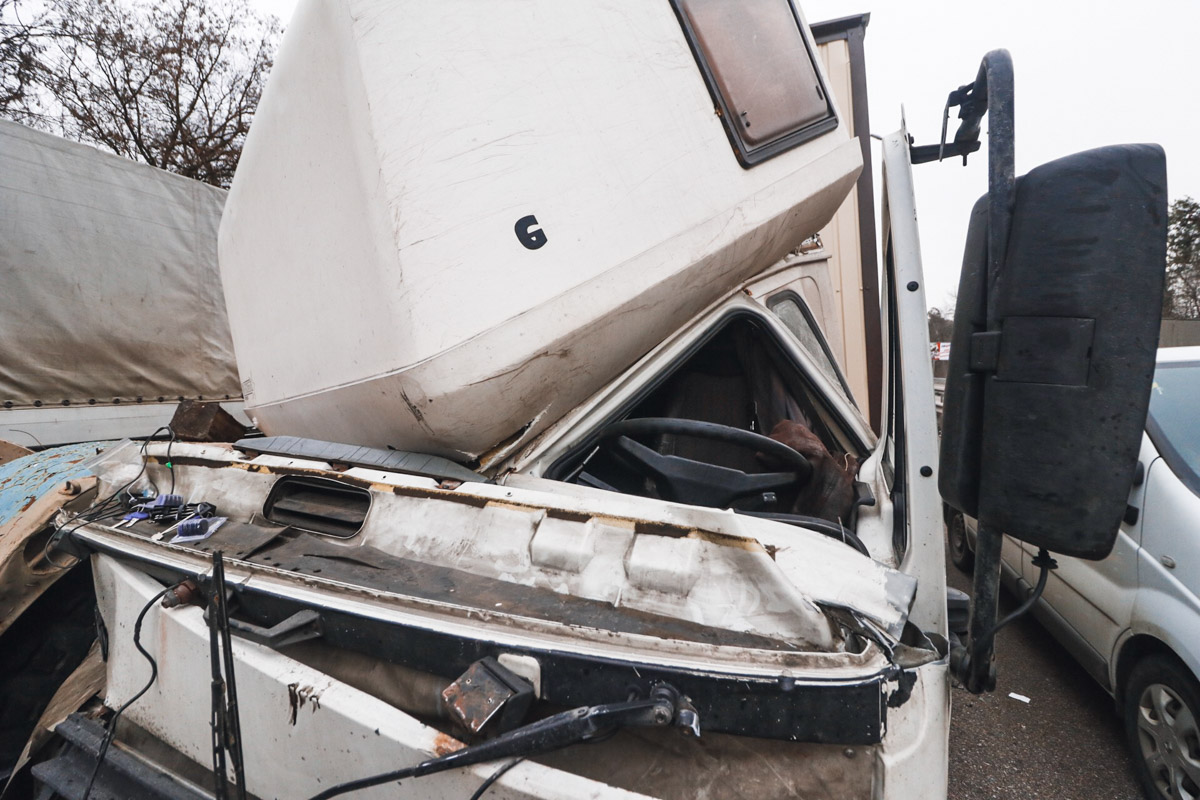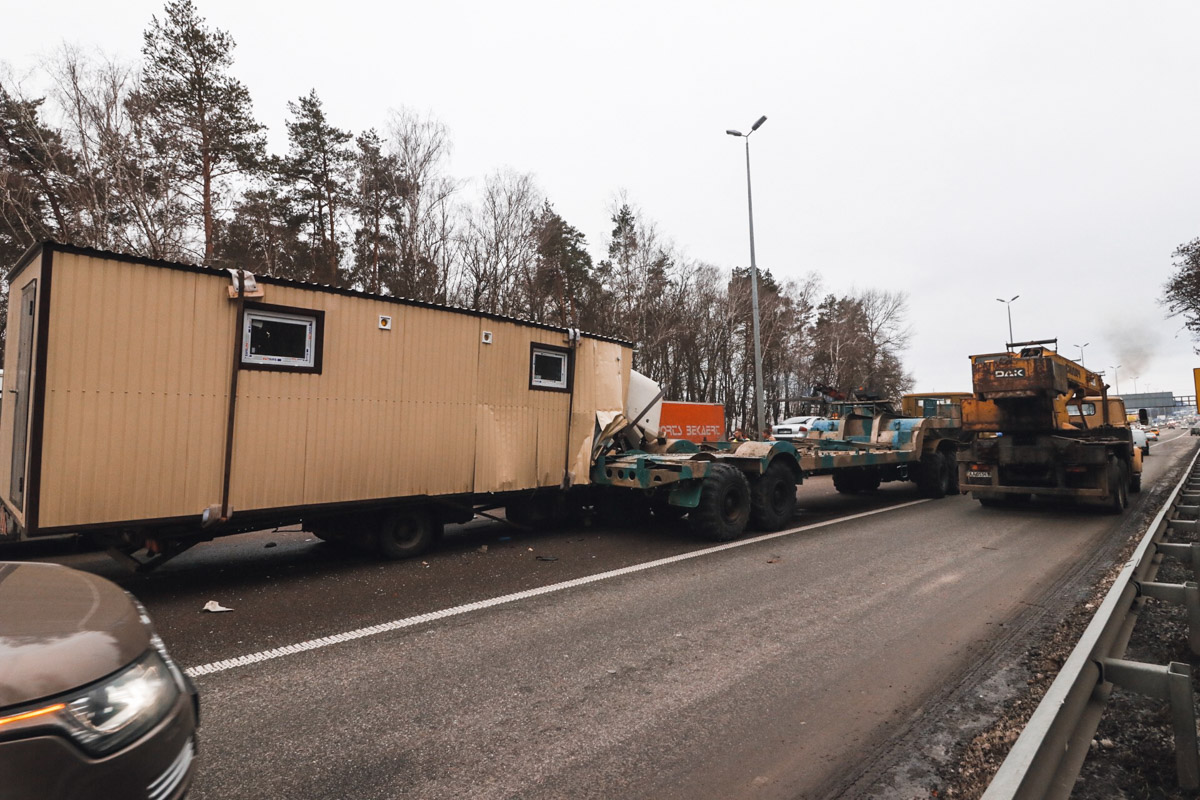 Тягач двигался из Киева по Житомирскому шоссе. В 300 метрах от поста полиции его догнал крупногабаритный грузовик Volvo, который перевозил строительный вагончик. От удара у грузовика смяло кабину. Водитель успел вывернуть руль и уйти немного в крайний ряд, поэтому основной удар пришелся на пассажирскую часть, где, к счастью, никого не было. КрАЗ двигался не в военной колоне, тягач менял пункт дислокации.