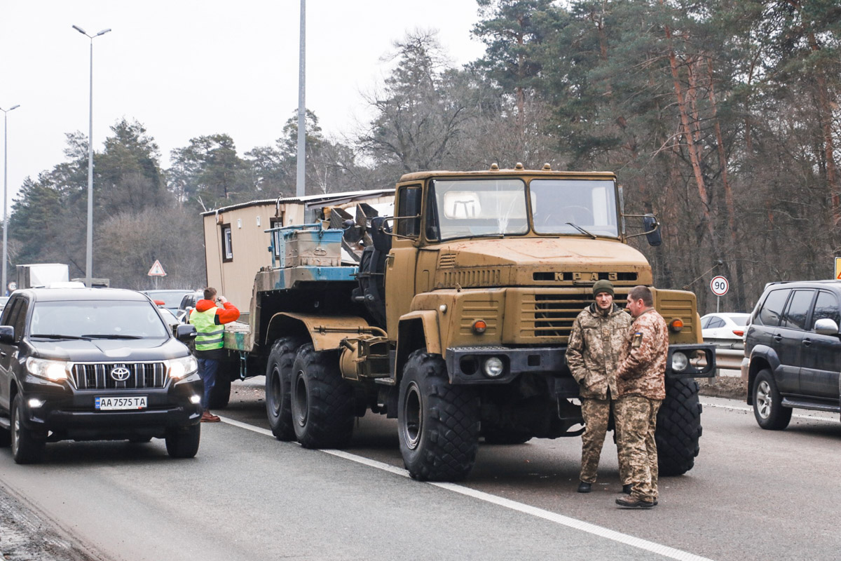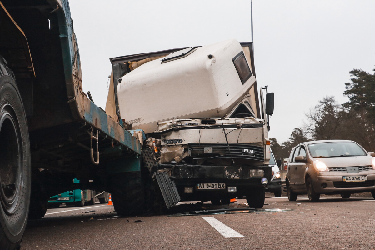Под Киевом столкнулись военный тягач и грузовик. На Житомирском шоссе образовались пробки