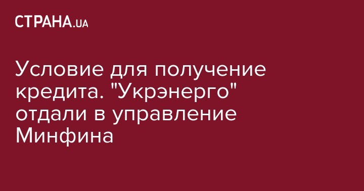 Условие для получение кредита. "Укрэнерго" отдали в управление Минфина