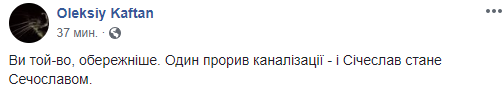 "Вы того, осторожнее. Один прорыв канализации и Сичеслав станет Сечеславом", - предупредил журналист Алексей Кафтан.