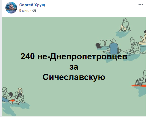 "240 не-Днепропетровцев за Сичеславскую" - иронично написал депутат Шевченковского райсовета от Оппозиционного Блока Сергей Хрущ.
