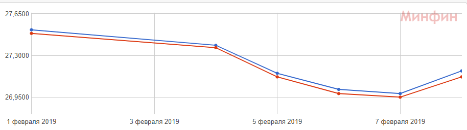 По данным НБУ, справочный курс гривни к доллару США на межбанковском валютном рынке 8 февраля укрепился до 26,8776 грн/$1 с 26,9591 грн/$1.