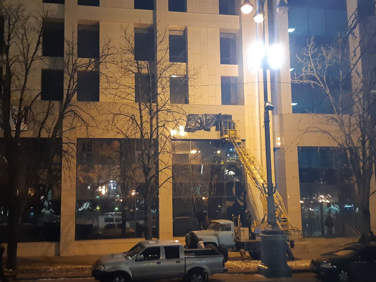 Фото процесса установки вывески опубликовали пользователи социальных сетей. Монтировать ее начали около 16 часов.
