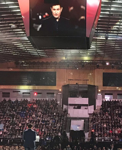 14:20 Президент с первой леди прошлись по залу в окружении охраны. Гости здороваются с ними за руку, некоторые делали селфи.
