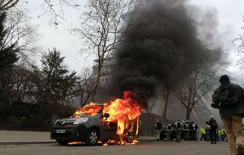 В Париже "желтые жилеты" сожгли авто военного патруля у Эйфелевой башни
