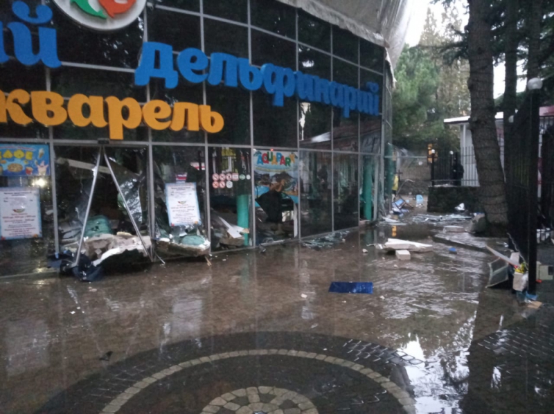 В Алуште развалился бассейн с дельфинами, вода хлынула на улицы, но животных спасли. Фото