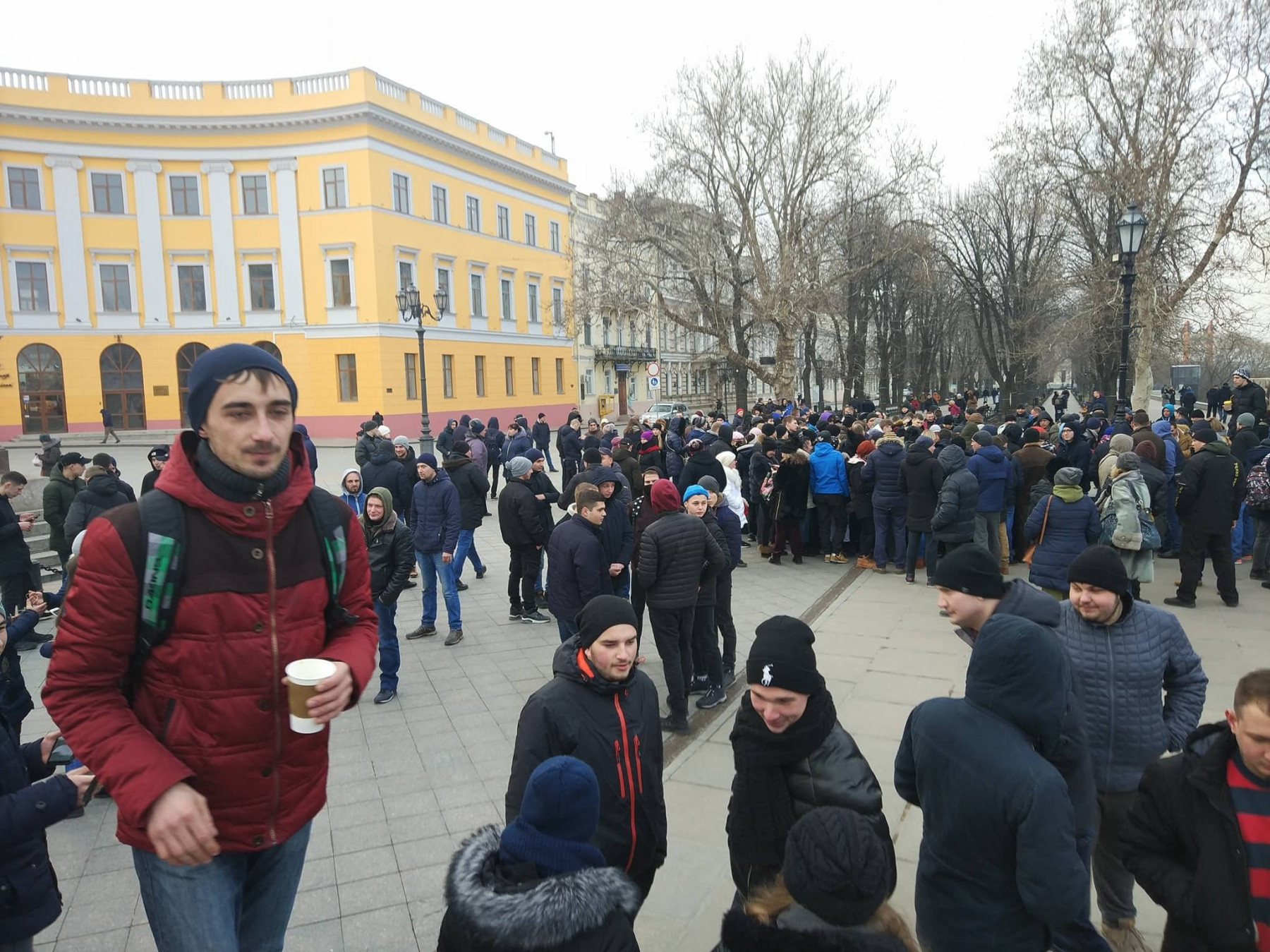 Когда около памятника Дюку собралась толпа "митингующих", оказалось, что организаторы не пришли. По телефону они сначала советовали собравшимся... покататься на фуникулере.
