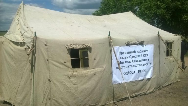 Саакашвили даже установил палатку с надписью "Временный кабинет председателя Одесской облгосадминистрации Михаила Саакашвили" на трассе "Одесса-Рени". Он заявлял, что будет работать до тех пор, пока не завершат реконструкцию трассы. Однако реалии поменялись, лишенный гражданства Саакашвили покинул Украину. А о достижениях по ремонту многострадальной "Одесса-Рени" начал говорить президент Петр Порошенко.