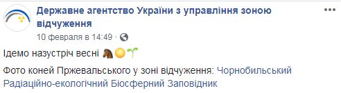 "Едем навстречу весне. Фото лошадей Пржевальского в зоне отчуждения", - говорится в сообщении.