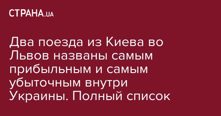 Два поезда из Киева во Львов названы самым прибыльным и самым убыточным внутри Украины. Полный список