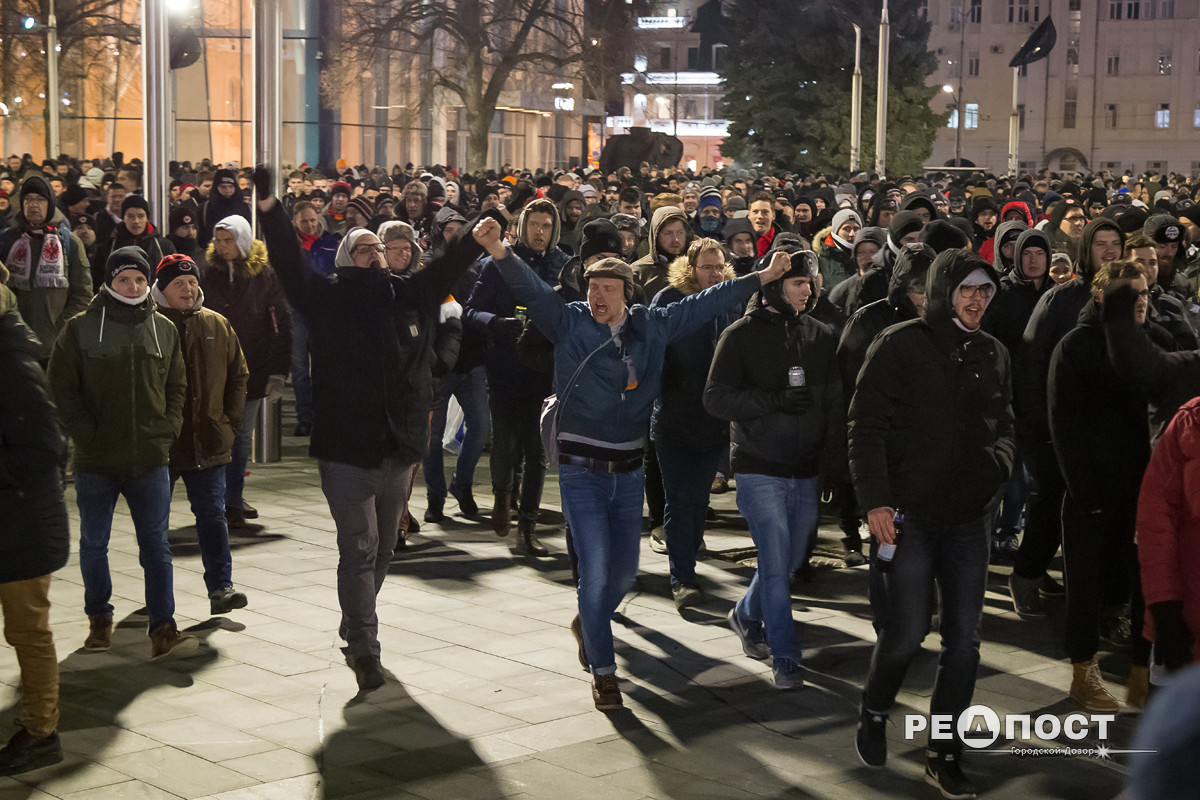 Поэтому марш прошел в сопровождении правоохранителей. Для фанов выделили правую полосу улицы Сумской и Московского проспекта - до стадиона "Металлист".