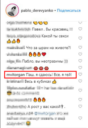 История с разрывом звездной пары Виторгана и Собчак получила не совсем ожиданное продолжение. Обманутый муж, Максим Виторган сделал шокирующее признание в соцсети. Он написал о нетрадиционной сексуальной ориентации коллеге по ремеслу Павлу Деревянко, который опубликовал на своей странице в Instagram фото с голым торсом.