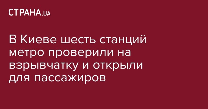 Ранее "Страна" сообщала, что в центре Киева закрыли станции метро из-за поиска бомбы. Сначала были закрыты Cтанции "Майдан Независимости" и "Крещатик". Затем появилось сообщение, что взрывчатку не нашли, станции начали работу, но уже закрыты станции "Площадь Льва Толстого" и "Дворец Спорта". Немного позднее были закрыты станции "Театральная" и"Золотые ворота".