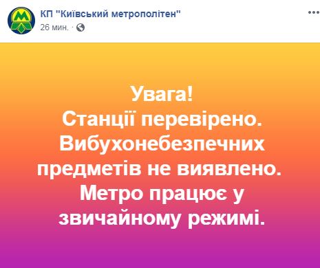 "Станции проверены. Взрывоопасных предметов не обнаружено. Метро работает в обычном режиме", - говорится в сообщении.