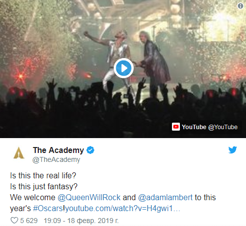 Киноакадемия США уже опубликовала в своем Twitter ссылку на это видео, сопроводив запись вступительными словами хита Bohemian Rhapsody: Is this the real life? Is this just fantasy? ("Это настоящая жизнь? Это просто фантазия?").