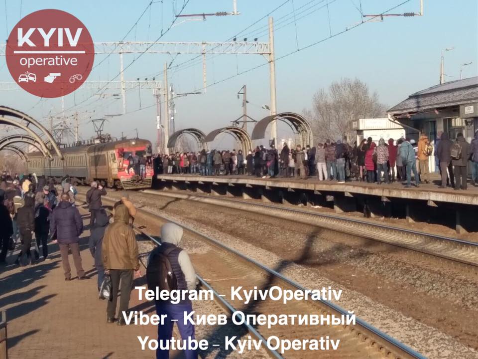 На Троещине штурмовали электричку и цеплялись за нее сзади. Фото