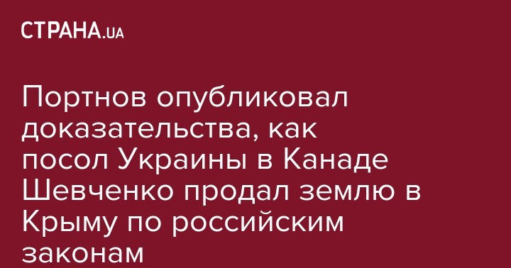 Портнов опубликовал доказательства, как посол Украины в Канаде Шевченко продал землю в Крыму по российским законам