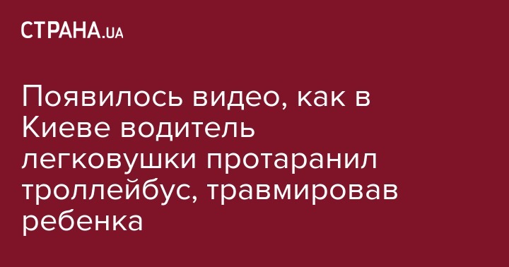 Появилось видео, как в Киеве водитель легковушки протаранил троллейбус, травмировав ребенка