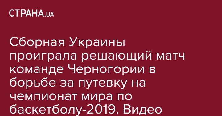 Сборная Украины проиграла матч отборочного турнира чемпионата мира-2019 по баскетболу. Она уступила команде из Черногории со счетом 74:76. Об этом речь идет на официальном сайте соревнований.
