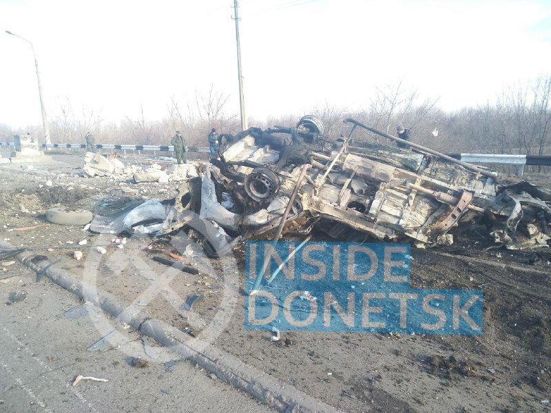 В субботу, 23 февраля, в районе пункта пропуска "Еленовка" на Донбассе в нейтральной зоне взорвался микроавтобус с людьми. Об этом сообщает ТАСС.