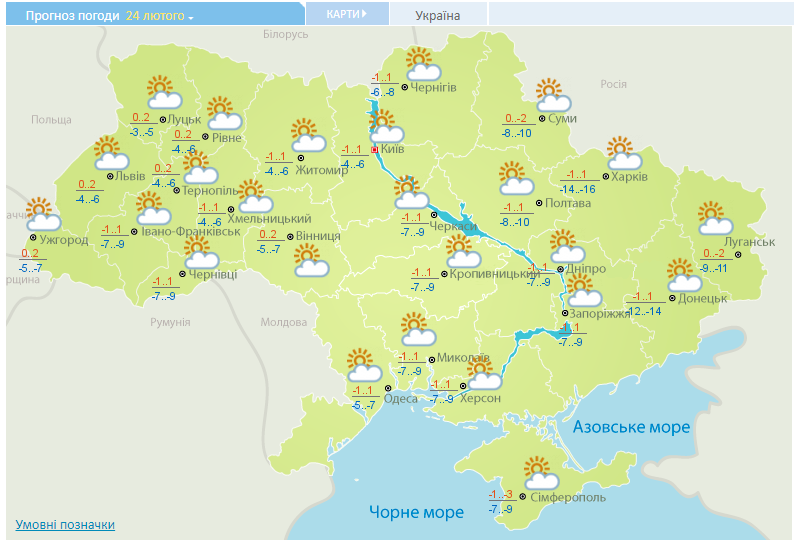 В воскресенье, 24 февраля, в Украине будет наблюдаться минусовая температура, но без осадков. Об этом сообщает Укргидрометцентр.