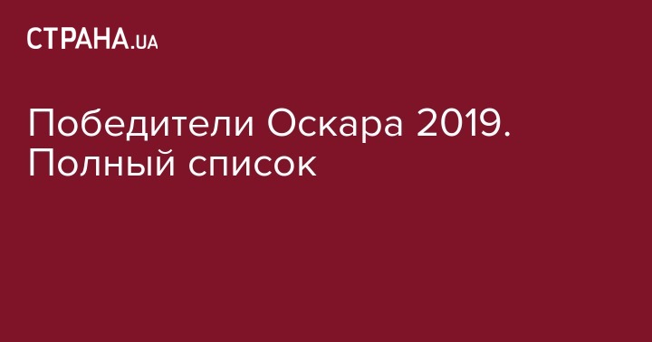 Церемония "Оскар-2019" подошла к концу. "Страна" публикует полный список победителей во всех номинациях.