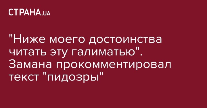 "Ниже моего достоинства читать эту галиматью". Замана прокомментировал текст "пидозры"