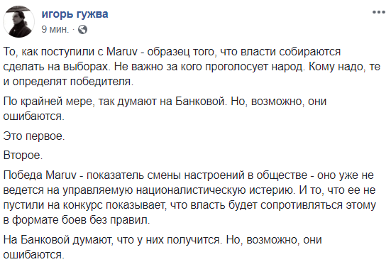 "То, как поступили с Maruv - образец того, что власти собираются сделать на выборах. Не важно за кого проголосует народ. Кому надо, те и определят победителя.