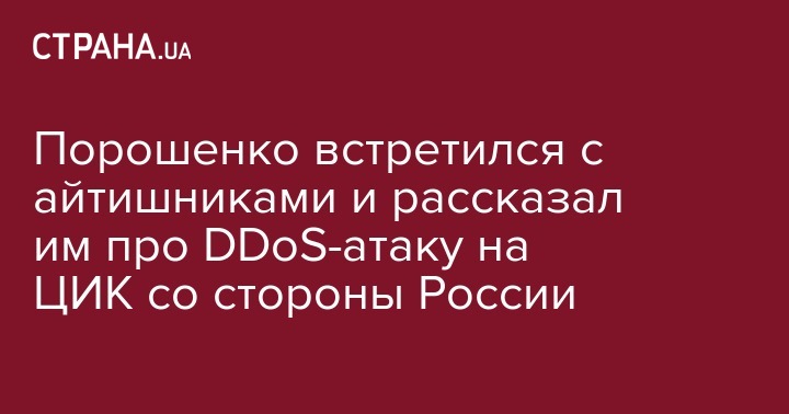 Президент Петр Порошенко говорит, что Центральная избирательная комиссия 24 и 25 февраля пережила DDoS-атаку со стороны России. Об этом он сообщил 26 февраля в Киеве во время встречи с представителями IT-индустрии, пишет "Украинская правда".