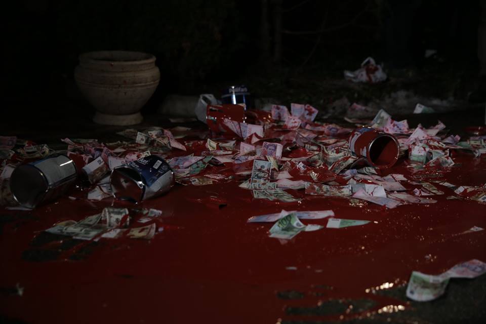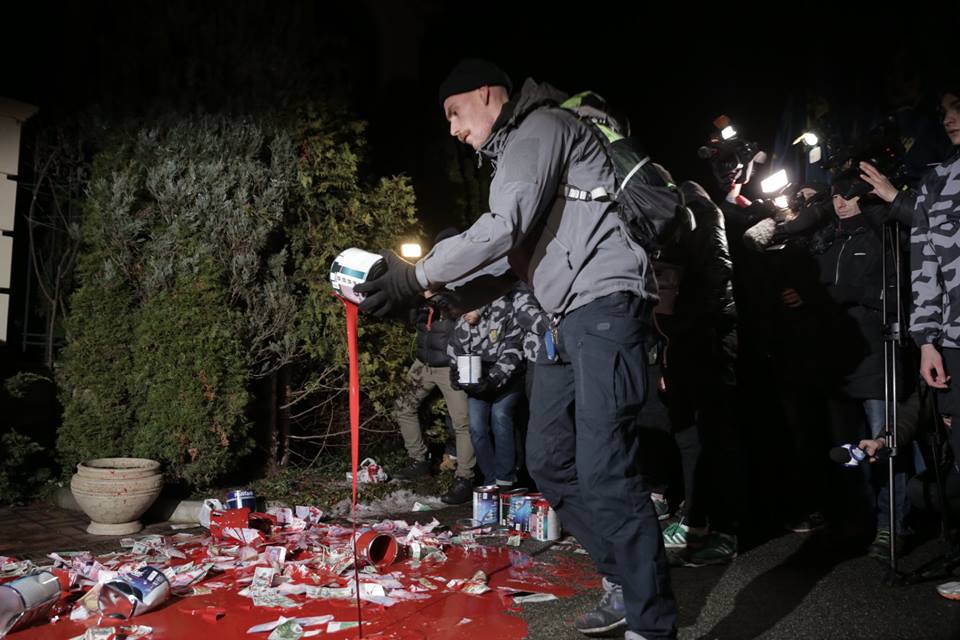 "Гладковским передали привет за воровство на оборонке. Салюты, файера, красная краска с "деньгами" у входа в усадьбу. Чудом не загорелся сам дом", - написал журналист Влад Красинский в Facebook.
