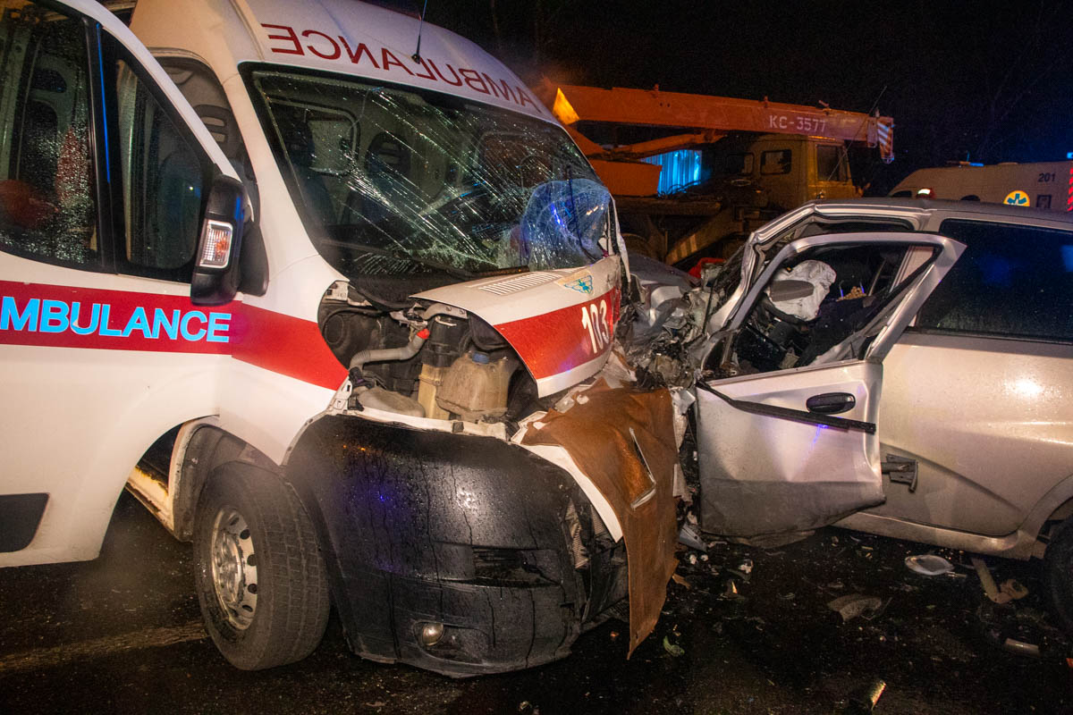 Поздним вечером в четверг, 28 февраля, в Киеве на выезде с моста Метро столкнулись ZAZ Vido и карета скорой помощи Peugeot Boxer. Авария произошла около 23:30 на Броварском проспекте.