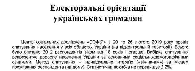 Опрос проводился с 20 по 26 февраля. То есть уже после скандала с #Сеткой Порошенко, скандала с отправкой претендента от Украины на "Евровидение". И, что характерно, в этом опросе действующий президент занял третье место, хотя ранее целый ряд социологических компаний давали ему второе место в рейтинге.