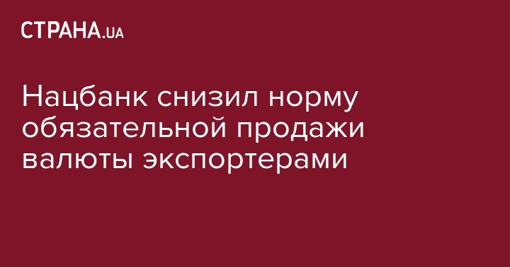С 1 марта Национальный банк Украины снизил норму обязательной продажи валютной выручки экспортерами с 50% до 30%. Об этом идет речь в постановлении Нацбанка от 6 февраля 2019 года № 35, опубликованном на сайте Верховной Рады.