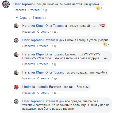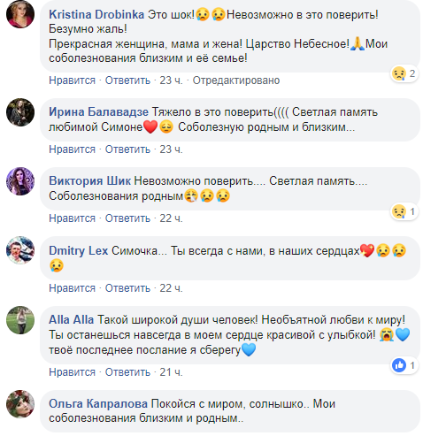 "Эта новость выбила почву из-под ног. Я не могла в это поверить, надеялась, что это ошибка. К сожалению, это оказалось реальностью. Ушла из жизни Симона Бородина. Она была светлым и добрым человеком", - написала одна из знакомых экстрасенса. "Прощай, Симона, ты была настоящим другом", - прокомментировал последнюю публикацию Бородиной на Facebook ее знакомый.