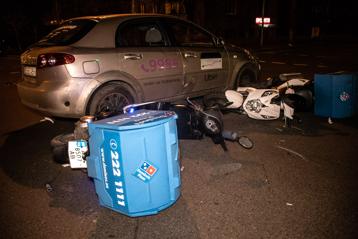В Киеве таксист Uber сбил двух разносчиков пиццы на мотороллерах