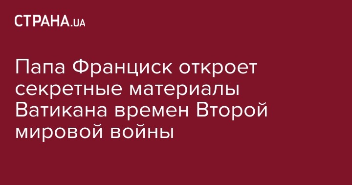 Папа Римский Франциск заявил о намерении открыть доступ к секретным документам Ватикана времен правления Пия XII, который возглавлял католическую церковь с 1939-го по 1958 годы, передает Reuters.
