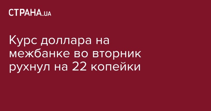 Курс доллара на межбанке во вторник рухнул на 22 копейки