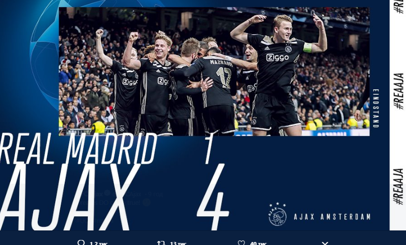 Лига Чемпионов, 2018/2019. Плей-офф. 1/8 финала. Реал - Аякс 1:4 (первый матч - 2:1)