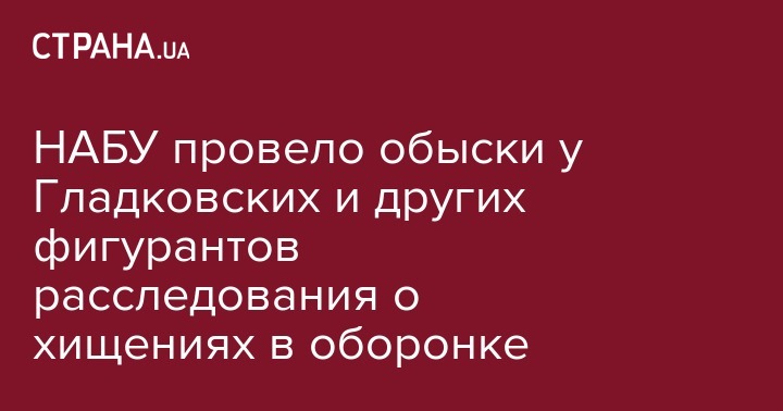 Национальное антикоррупционное бюро в четверг, 7 марта, проводит около 20 обысков по делу о хищениях в оборонке, в том числе, у Олега и Игоря Гладковских и Андрея Рогозы. Об этом ссо ссылкой на директора НАБУ Артема Сытника сообщает 112.ua.