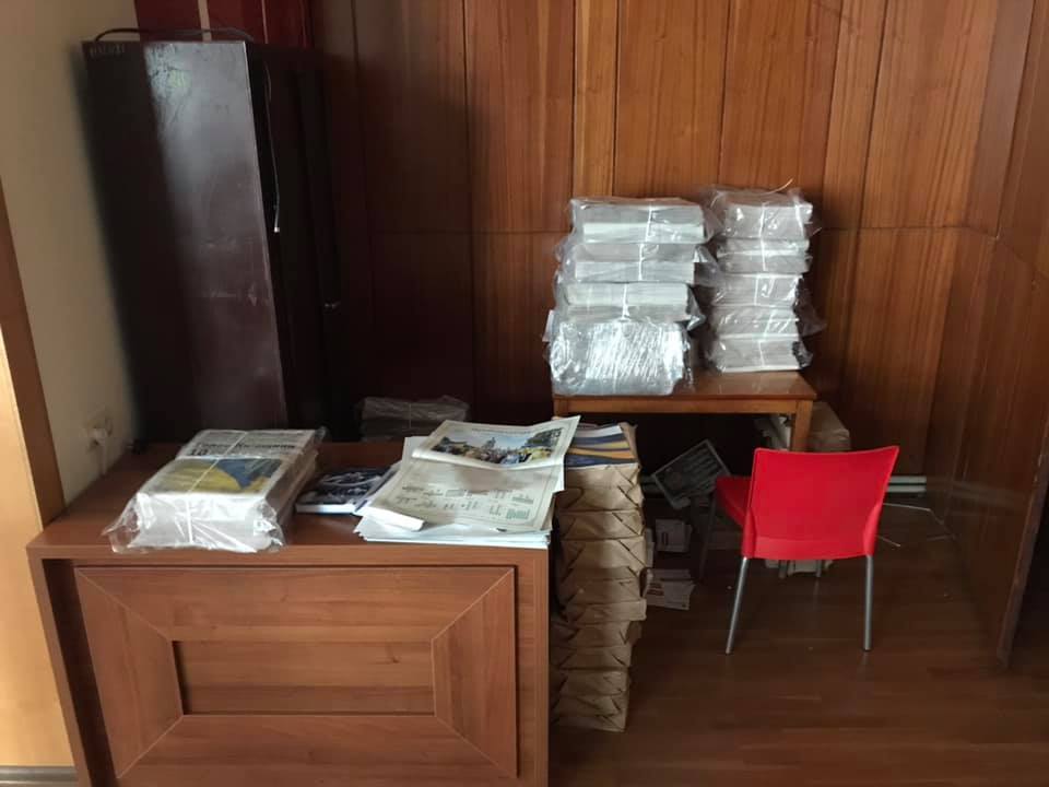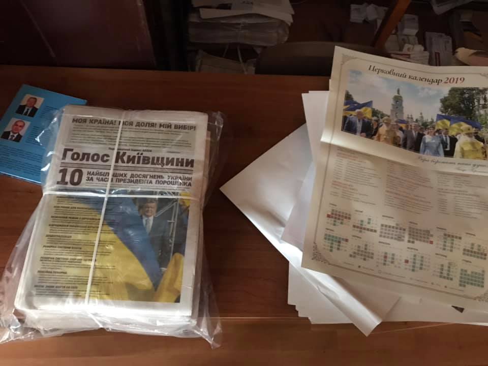 "Друзья, кто там сомневался, что Карплюк прыгнул под Пороха для получения политической крыши своей коррупционной и дерибанной деятельности! Вы только посмотрите, что прямо сейчас нашли активисты в актовом зале Ирпенского городского совета! Кучи агитмакулатуры за барыгу всея Украины! А мы говорили, что чудовище договорилась с БПП, что он даст на выборах президента хороший результат по Пороху!" - добавил он.