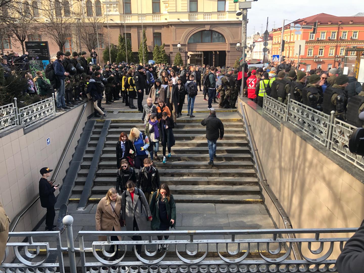 13.29 Участники Марша благополучно добрались до Почтовой площади и спускаются в метро, чтобы разъехаться по домам. А полиция тем временем изолировала радикалов.