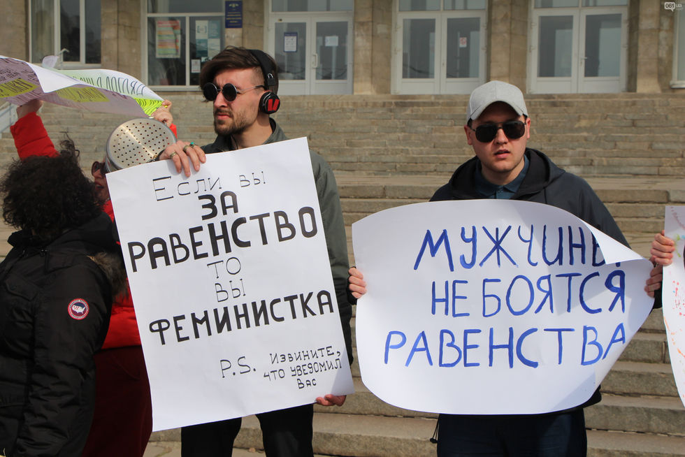 "Эти призывы "женщина, равноправие, гендер" – для этого всего нет места в наше время. Наши права никто не ущемляет, мы хотим показать, что есть девушки с альтернативным мнением", – считает студентка Анастасия.