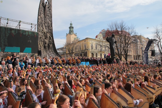 В субботу, 9 марта, во Львове 407 бандуристов одновременно исполнили песни на стихи Тараса Шевченко. Об этом сообщает Львовская ОГА.