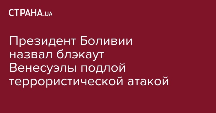 Президент Боливии назвал блэкаут Венесуэлы подлой террористической атакой
