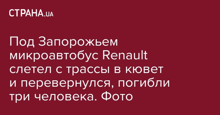 Под Запорожьем микроавтобус Renault слетел с трассы в кювет и перевернулся, погибли три человека. Фото