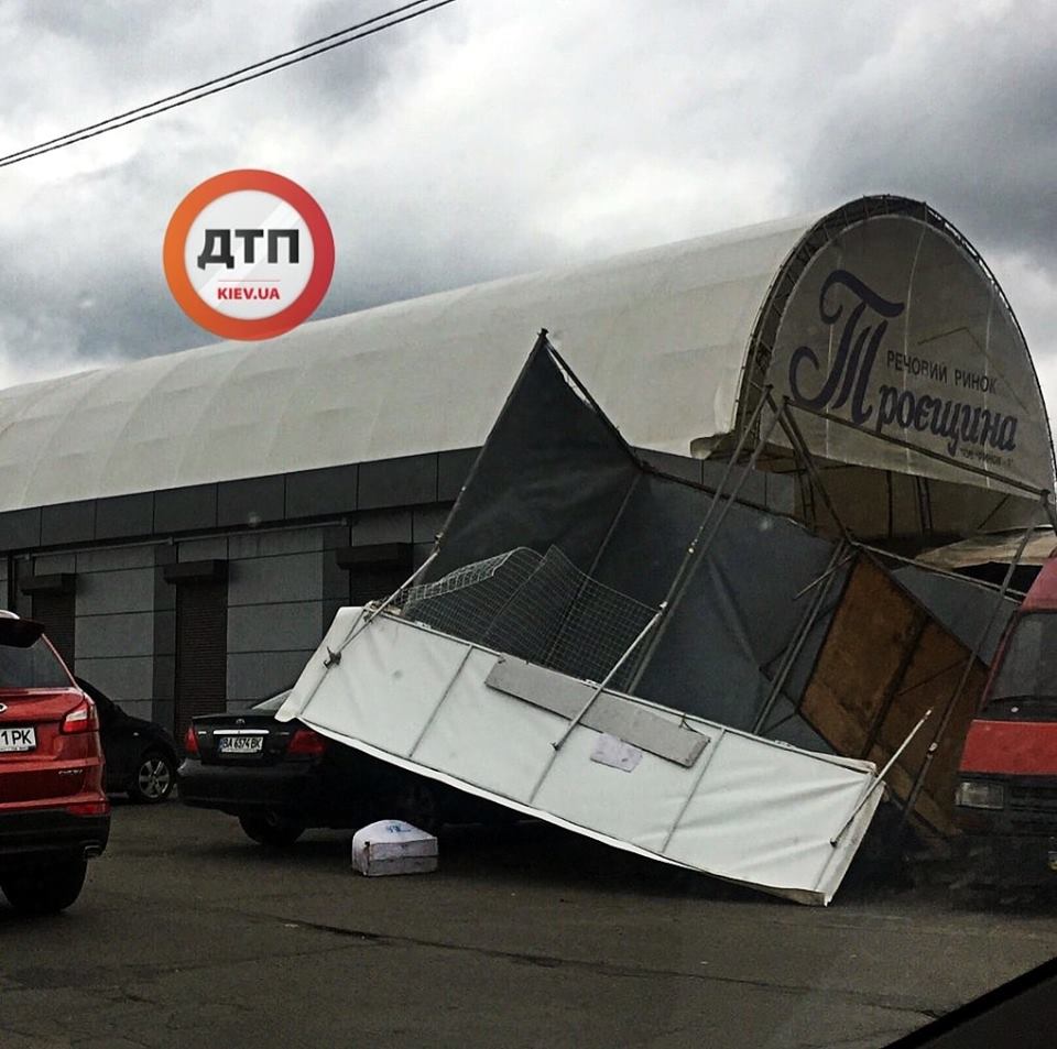 А сегодня возле метро "Золотые ворота" на улице Лысенко ветер сорвал часть кровли, которая рухнула на три припаркованных автомобиля и оборвала электрические провода. У двух машин от удара вылетели стекла, у третьей - слетели номера. К счастью, обошлось без жертв. Спасатели и коммунальщики перекрыли улицу.
