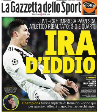 Вчера, 12 марта, Ювентус совершил чудо в ответном матче 1/8 Лиги чемпионов. Благодаря хет-трику Криштиану Роналду "старая синьора" обыграла по сумме двух матчей мадридский Атлетико (первая игра 0:2) и вышла четвертьфинал.