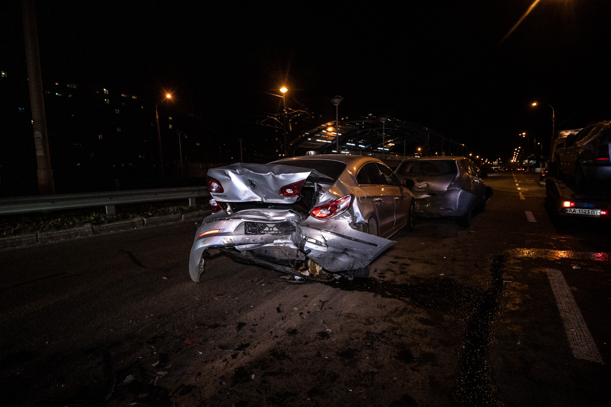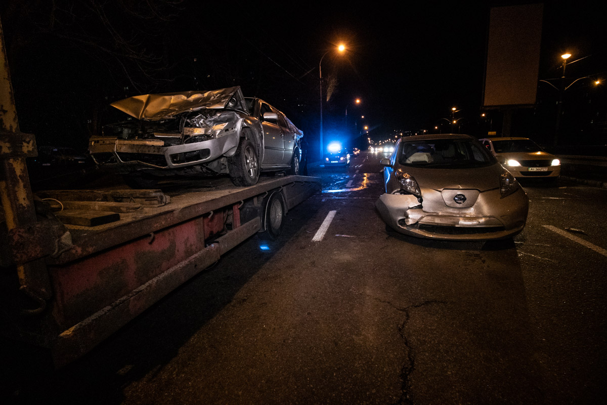 Автомобиль Skoda, который ехал по проспекту Леся Курбаса в сторону Окружной, не выдержал дистанцию и въехал в Volkswagen CC. Эта машина по инерции протаранила едущий впереди Nissan Leaf. Закончилась цепочка столкновений на Volkswagen Transporter.