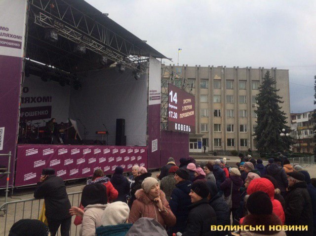В Ковеле на встречу с Порошенко привезли людей и пропускают к сцене только по спискам. Фото и видео