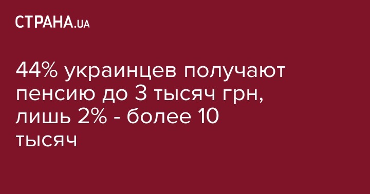 44% украинцев получают пенсию до 3 тысяч грн, лишь 2% - более 10 тысяч